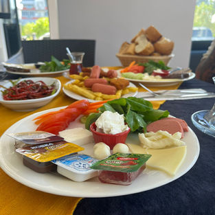 Mersin Panorama Otel Güne deniz manzarasına karşı enfes bir kahvaltı ile başlamak ister misiniz? Mersin Panorama Otel olarak oda kahvaltı konseptimizle, misafirlerimize her sabah taze ve lezzetli ürünlerle hazırlanan zengin bir kahvaltı sunuyoruz. Serpme kahvaltımızda yerel tatlardan doğal ürünlere kadar her detay özenle seçilir. Yaz güneşiyle parlayan terasımızda kahvenizi yudumlarken, Akdeniz’in huzur veren manzarası eşliğinde tatilinize keyifli bir başlangıç yapabilirsiniz. Günün en güzel saatlerini lezzetle buluşturmak için sizleri restoranımıza bekliyoruz.